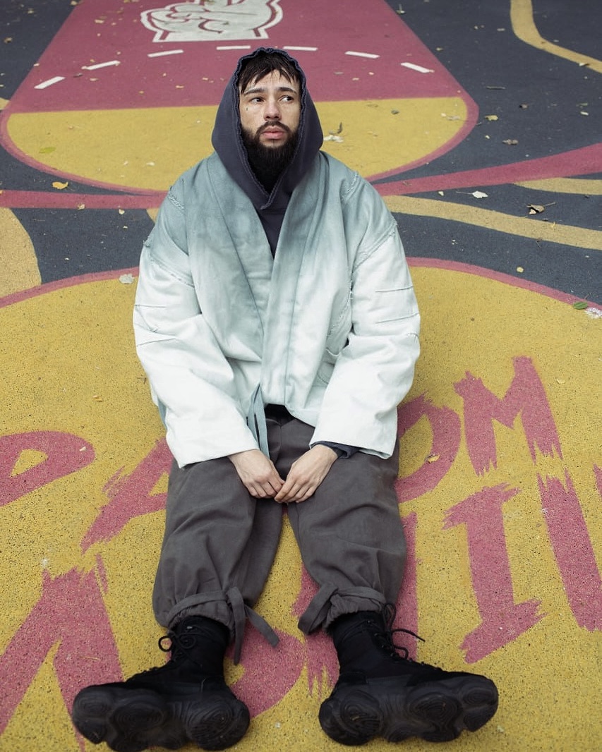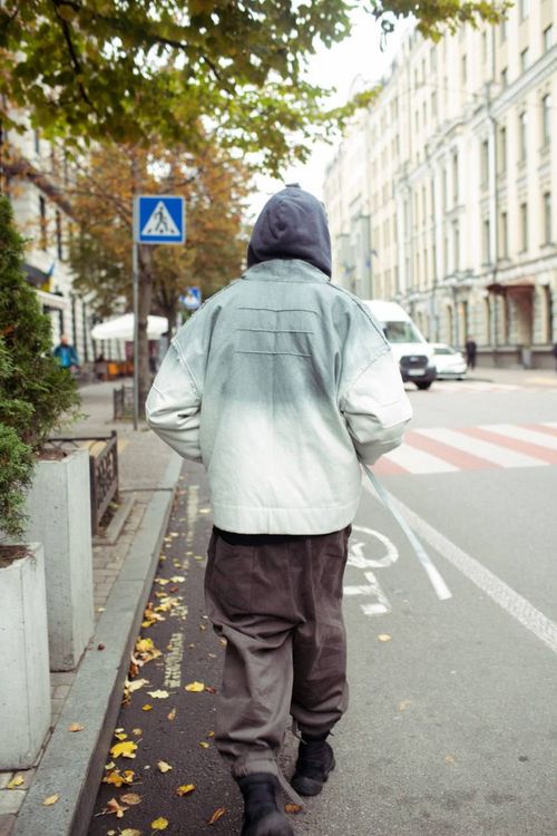 Осінній дроп представлений у вигляді кимоно-бомбера з щільного деніму екрю, пофарбованого вручну у ніжно-сіро-блакитний відтінок, який нагадує чисту воду високогірних озер. Декорований зовнішніми швами з необробленими краями, зі зручними кишенями та продуманим кроєм, що формує чітку японську форму. Утеплений, комфортний у щоденному носінні та водночас максимально стильний. Ексклюзивна річ унісекс, що випромінює свіжість і легкість.