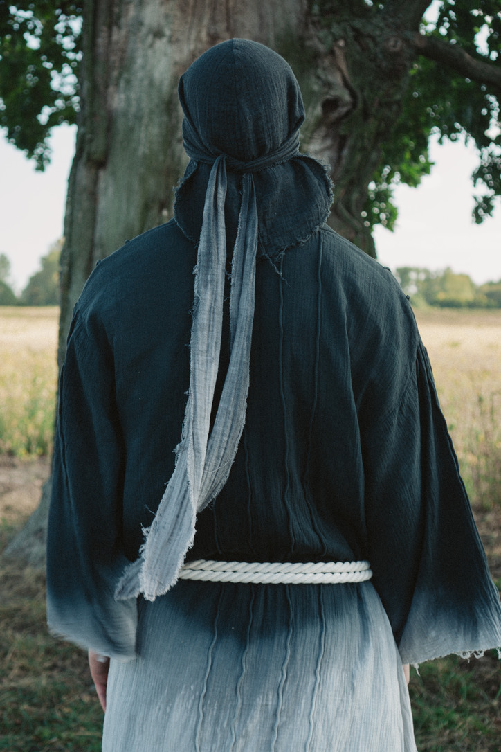 Це кімоно створене з натуральної тканини, яку ми власноруч пофарбували у плавний градієнт природних відтінків. Його особливість — у складному оздобленні: ми заморочилися над великою кількістю швів, які виконані завдяки техніці обшивання та вставлення канатних елементів. Такі «канатні» лінії надають виробу характеру й водночас допомагають кимоно тримати форму. Річ має зручні кишені, тож вона практична у щоденному використанні. Кимоно легко стилізувати під будь-який образ: носити у місті, брати з собою в подорож чи одягати на особливі події. Це універсальний елемент гардеробу, що поєднує майстерність, автентичність та сучасність.