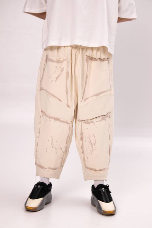 Жата конопляна тканина з грубою фактурою робить кімоно живим і чесним. Сирі краї, заломи, стрічки з необробленими краями — не недолік, а принцип. Вони додають руху, свободи, ненав’язливої дикості. Воно не прагне бути ідеальним — воно справжнє.