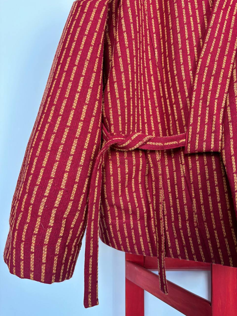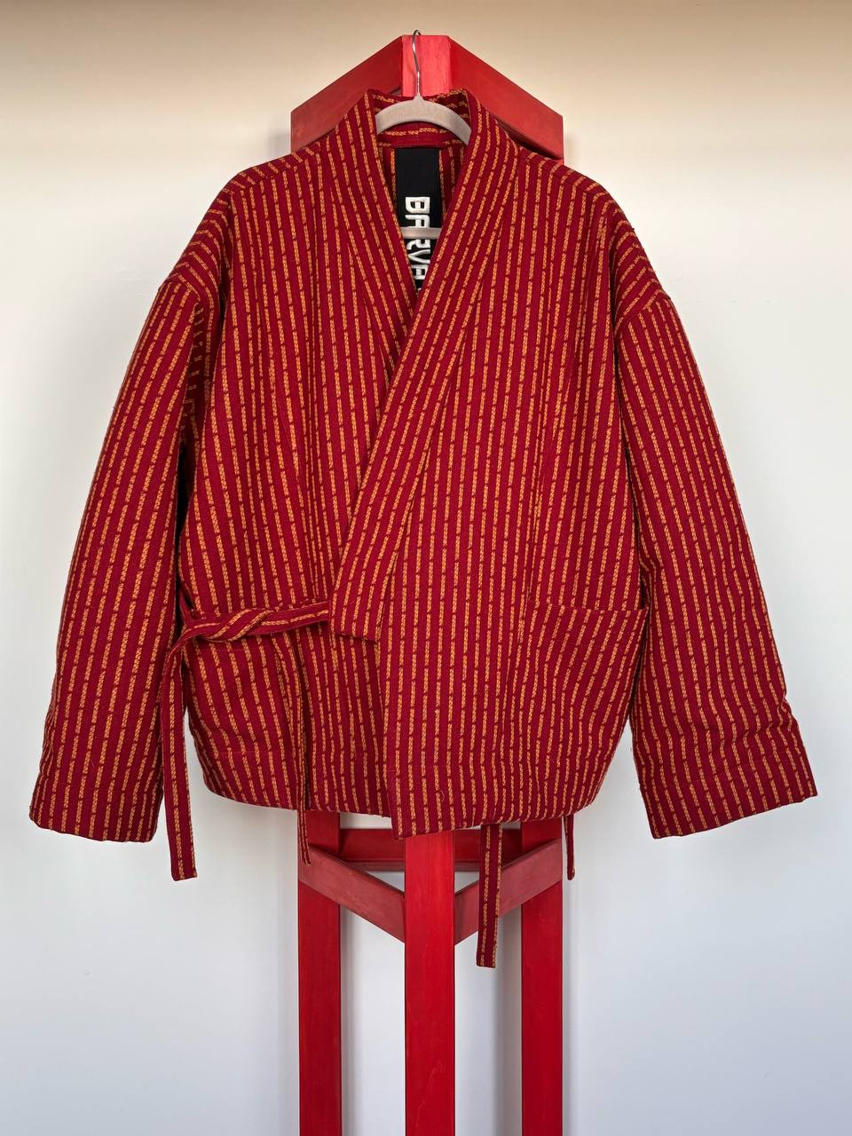 Це яскравий червоний бомбер у жовту смужку, виконаний у теплому насиченому відтінку червоного, що дарує енергійний та драйвовий настрій. Він чудово тримає форму й легко вписується у щоденні образи - під нього можна підібрати будь-що, і завжди виглядатиме гармонійно. Унісекс, продуманий для щоденного носіння восени: комфортна базова річ, у якій ти почуватимешся максимально вільно й стильно.